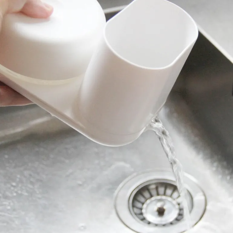 Do-Dish såpedispenser/oppvaskstativ i hvit med målene 18 x 11 x 11 cm fra Bosign er en innovativ og praktisk løsning for å forenkle oppvasken og holde kjøkkenet ryddig. Denne smarte dispenseren gir deg nøyaktig riktig mengde oppvaskmiddel med et enkelt trykk. Plasser oppvaskbørsten eller svampen mot lokket, og pumpen doserer oppvaskmiddel direkte på rengjøringsredskapet, noe som sikrer rask og effektiv rengjøring. For optimal flyt og redusert forbruk kan du tilsette litt vann i beholderen.