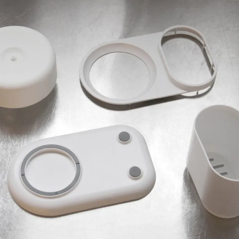 Dispenseren står stabilt takket være den sklisikre silikonbasen, som sørger for at den holder seg på plass selv på glatte overflater. Den kompakte størrelsen og elegante designet passer sømløst inn i ethvert kjøkken og bidrar til en mer organisert arbeidsflate. Denne patentbeskyttede oppfinnelsen, designet av Shinwei Yen, kombinerer funksjonalitet og stil, og er laget av resirkulerbare materialer.