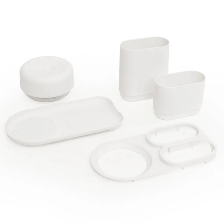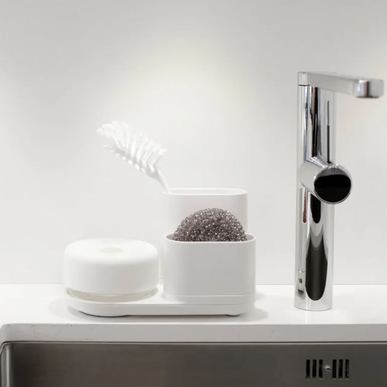 Do-Dish såpedispenser med oppvaskstativ i hvit på 21,5 x 11 x 13 cm fra Bosign er en praktisk og elegant løsning for å holde kjøkkenbenken ryddig og organisert. Stativet har plass til oppvaskmiddelpumpen, oppvaskbørsten og svampen, slik at alt du trenger for rengjøring er samlet på ett sted.