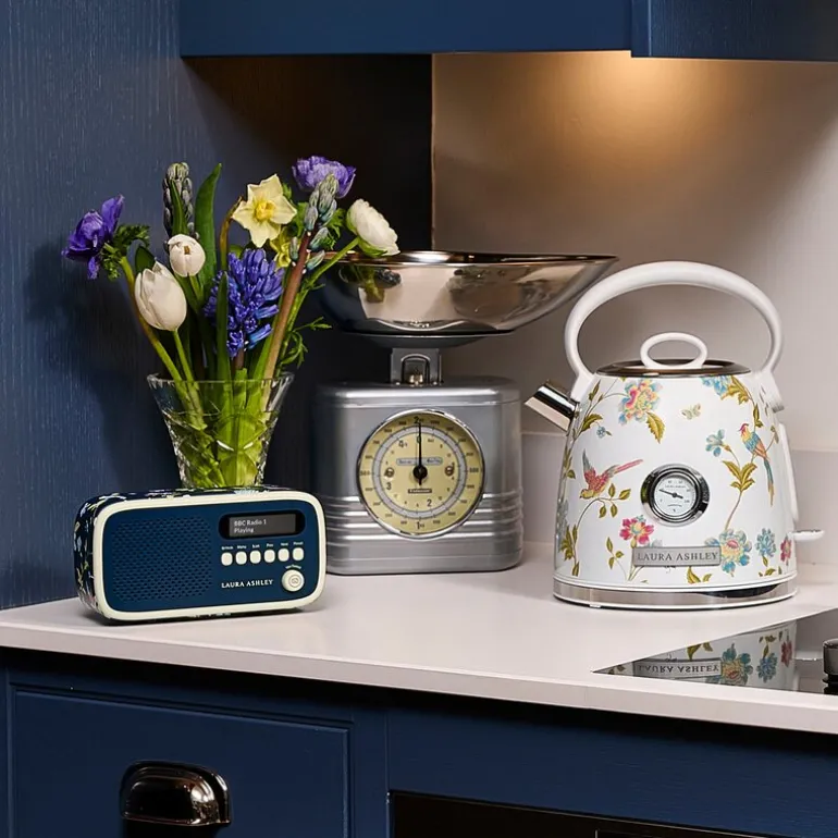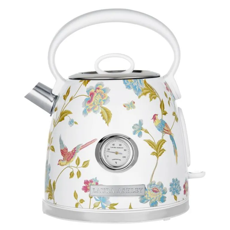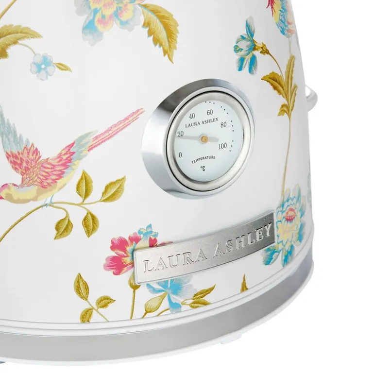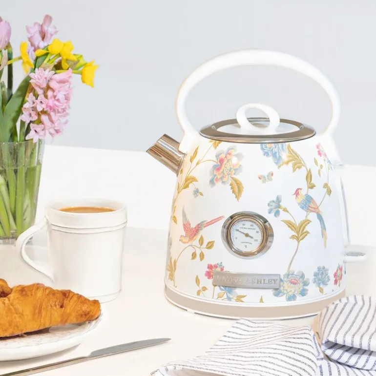Dome elektrisk vannkoker 1,7 liter i Elveden hvit fra Laura Ashley kombinerer funksjon og estetikk for daglig bruk. Det innebygde termometeret gir mulighet til å følge med på vanntemperaturen, noe som passer godt for deg som ønsker nøyaktighet i tilberedningen av te og kaffe. Kannen rommer opptil syv kopper og har høy effekt for rask oppvarming.