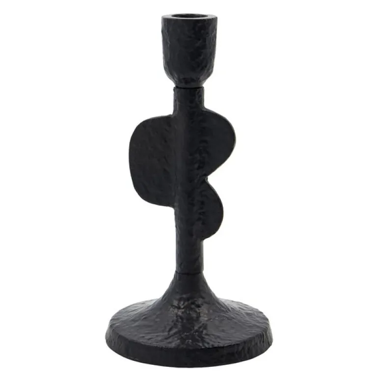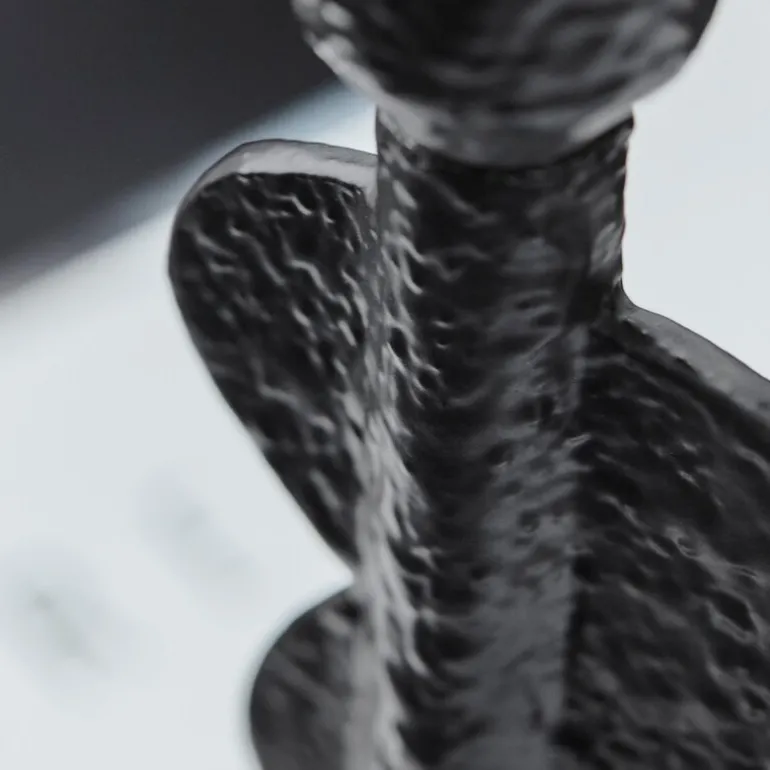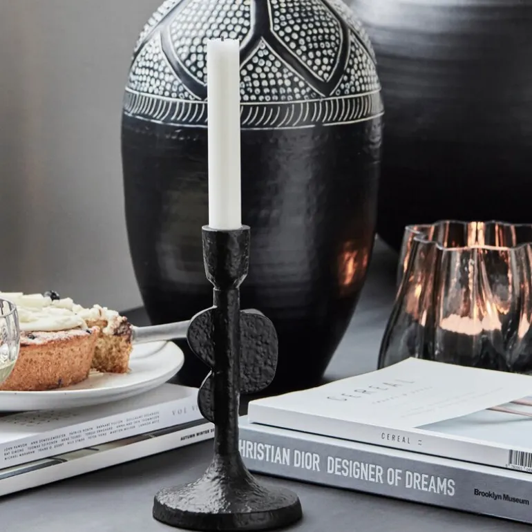Med Donna lysestake 20 cm fra House Doctor får du et stilrent og samtidig kunstnerisk element i hjemmet. Den er laget i sort støpt aluminium og har en asymmetrisk form som gir en følelse av bevegelse og skulptur. Overflaten har en ru, håndverksinspirert tekstur som gjør den interessant fra alle vinkler.