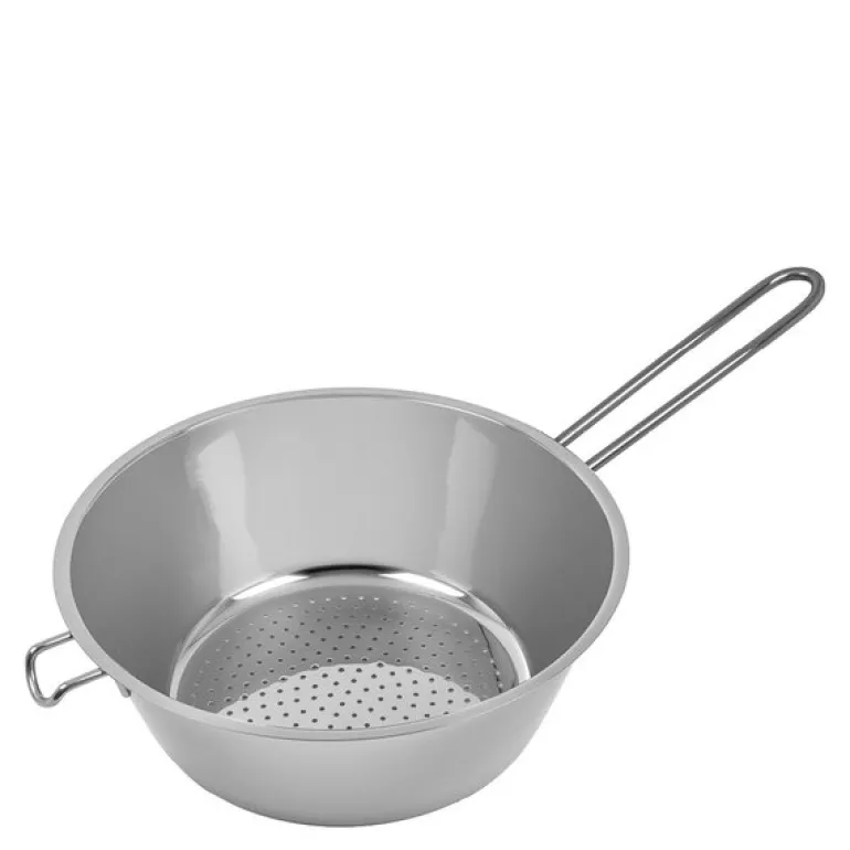 Dørslag på 23,5 cm fra Exxent i rustfritt 18/10 stål er et pålitelig og slitesterkt redskap, utviklet med tanke på profesjonelle kjøkken. Det kraftige håndtaket gir et solid grep, noe som gjør det enkelt og trygt å håndtere dørslaget under matlagingen.