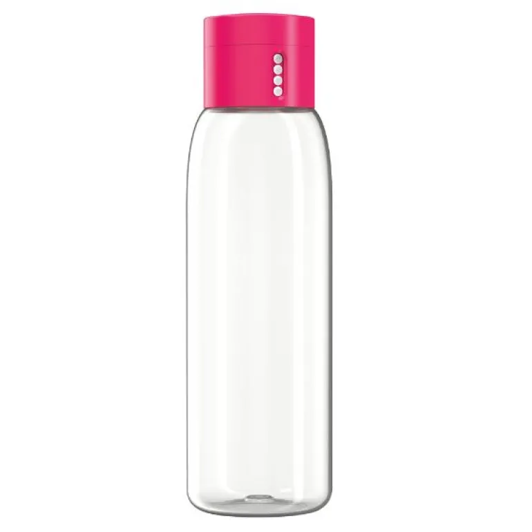 Det er et velkjent faktum at drikkevann og det å holde seg hydrert er en viktig del av å nyte en sunnere livsstil. Hver gang du lukker lokket etter fylling, vises en ny prikk i displayet, slik at du kan spore opptil fire flasker per dag (1,6 liter). Ved å sette deg selv et mål å drikke et visst antall flasker, gir prikk en enkel påminnelse om hva du har oppnådd og mild oppmuntring til å nå målet ditt. Dot er en smart, men lavteknologisk måte å forbedre din hydrering på. Hendig, kompakt størrelse til trening, tur, jobb eller skole. Flasken er 7 cm i diameter, 23,5 cm høy og rommer 600 ml. Kan rengjøres i oppvaskmaskin, men toppen anbefales rengjort for hånd for å unngå vannansamling i hulrom.