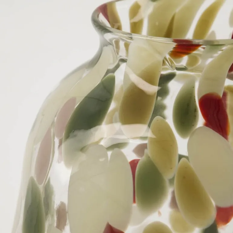 Dot vase 23 cm fra House Doctor er et unikt stykke munnblåst glasskunst som kombinerer håndverk med elegant design. Den organiske formen gir et mykt og moderne uttrykk, mens de håndmalte prikkene i klassiske farger tilfører karakter og dybde.