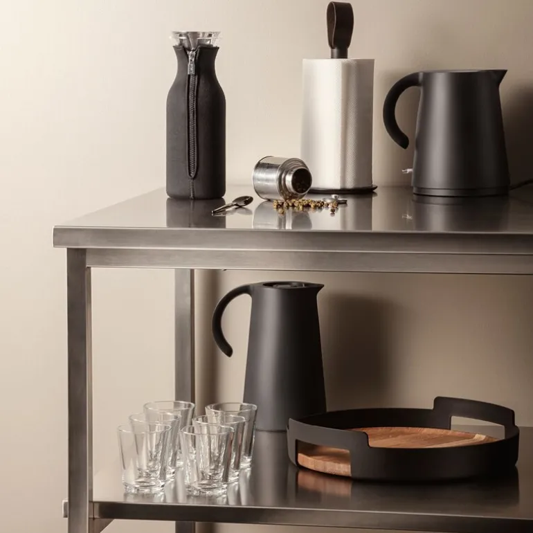 Disse drikkeglassene fra Eva Solo er designet for å passe til både varme og kalde drikker. Det karakteristiske mønsteret i bunnen etterligner bølger i vann, mens de tykke glassveggene skaper en vakker lyseffekt når glasset er fylt.