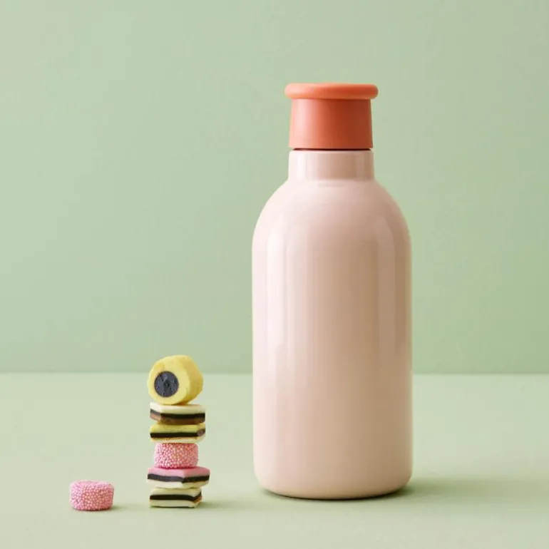 Rose termoflaske, DRINK-IT 0,5 liter fra Rig-Tig. DRINK-IT-flasken er som en ekte superhelt i ryggsekken din! Med sin smarte skrukork er det en lek for hele familien å åpne og lukke – ingen lekkasjer her! Flasken rommer 0,5 liter og veier nesten ingenting, noe som gjør den perfekt for dine eventyr. Uansett om du vil holde din favorittdrikk varm som en vulkan eller kald som et isfjell, er DRINK-IT den uunnværlige følgesvennen med sitt dobbelveggede termosflasketriks. Laget av resirkulert stål og PP plast, er denne termosflasken et stilfull valg.