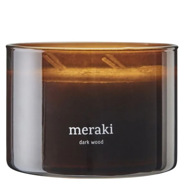 Skap en deilig og varm atmosfære med duftlyset Dark Wood 7,5×10 cm fra Meraki. Toppnoter av rom, sort pepper og rose blander seg vakkert med hjertenoter av muskatnøtt, nellik og rav. Basisnotene av sandeltre, sedertre og patchouli gir en jordaktig og dyp finish. Med en rik og treaktig duft i kombinasjon med den brune glassbeholderen, tilføres rommet et sofistikert preg.