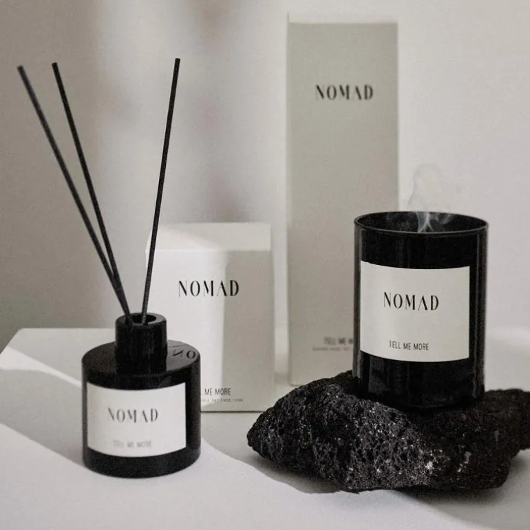 Duftlys nomad fra Tell Me More. Vakre duftlys beriket med herlige og avslappende dufter som skaper en varm og naturlig følelse i hjemmet ditt. Duftlysene har en god duftspredning og egner seg like godt til bruk på badet som i stuen.