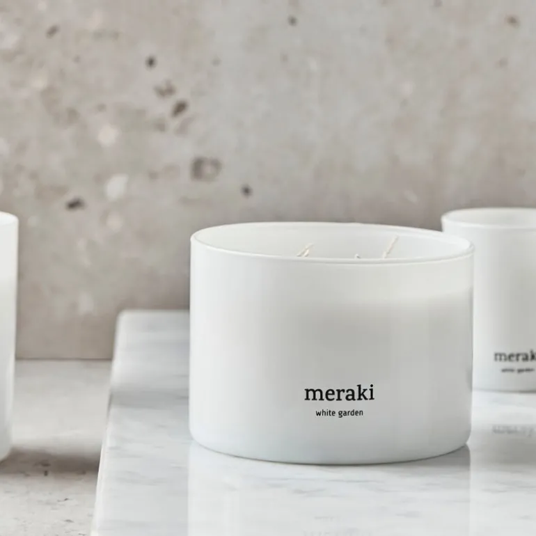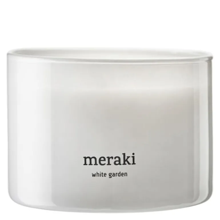 White garden duftlys fra Meraki. Gi hjemmet ditt en rolig og avslappet atmosfære med White Garden 7,5×10 cm duftlys fra Meraki. Med friske toppnoter av grønne nyanser og roser sprer dette lyset en herlig innbydende duft. Mens stearinlyset brenner, kommer mellomtoner av syklamen, kokos og sjasmin frem, og tilfører en myk og floral duft. Til slutt avrundes duftopplevelsen med basenoter av sedertre, patchouli og musk, som gir en varm og jordnær følelse.