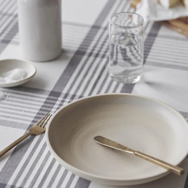 Large Checks 140×240 cm duken fra By Mogensen er laget av 100 % økologisk GOTS-sertifisert bomull, som er et bærekraftig materialvalg. Lerretet er vevd i harmoniserende nyanser av grått og brunt, noe som gjør det allsidig og egnet for ulike interiørstiler. Dens eleganse gir bordet en følelse av vekt og skjønnhet. Materialet gir lerretet et rustikk og eksklusivt utseende samtidig som det skaper en tidløs, rolig og hjemmekoselig atmosfære i rommet.
