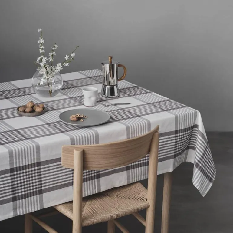 Duk large checks i hvit/grå 140 x 320 cm fra By Mogensen. Den sjarmerende duken er produsert bomull, vevd i nordiske, harmoniserende grå og brune nyanser som passer perfekt inn i mange stiler. Den elegante duken legger seg tungt og vakkert på bordet. Materialet gir duken et både rustikk og eksklusivt uttrykk. Samtidig skapes et tidløst, rolig og hjemmekoselig uttrykk i rommet.