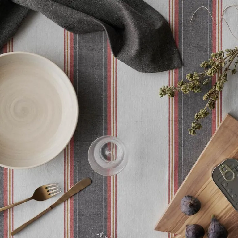Duk large stripes i hvit/rød 140 x 320 cm fra By Mogensen. Den sjarmerende duken er produsert i bomull, vevd i nordiske, harmoniserende nyanser som passer perfekt inn i mange stiler. Den elegante duken legger seg tungt og vakkert på bordet. Materialet gir duken et både rustikk og eksklusivt uttrykk. Samtidig skapes et tidløst, rolig og hjemmekoselig uttrykk i rommet.