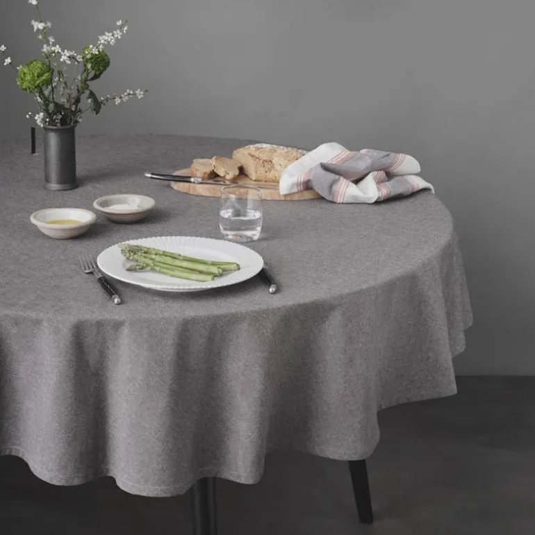 Rund duk 180 cm i fargen earth. Den sjarmerende duken fra By Mogensen er produsert i bomull, vevd i nordiske, harmoniserende grå og brune nyanser som passer perfekt inn i mange stiler. Den elegante duken legger seg tungt og vakkert på bordet. Materialet gir duken et både rustikk og eksklusivt uttrykk. Samtidig skapes et tidløst, rolig og hjemmekoselig uttrykk i rommet.