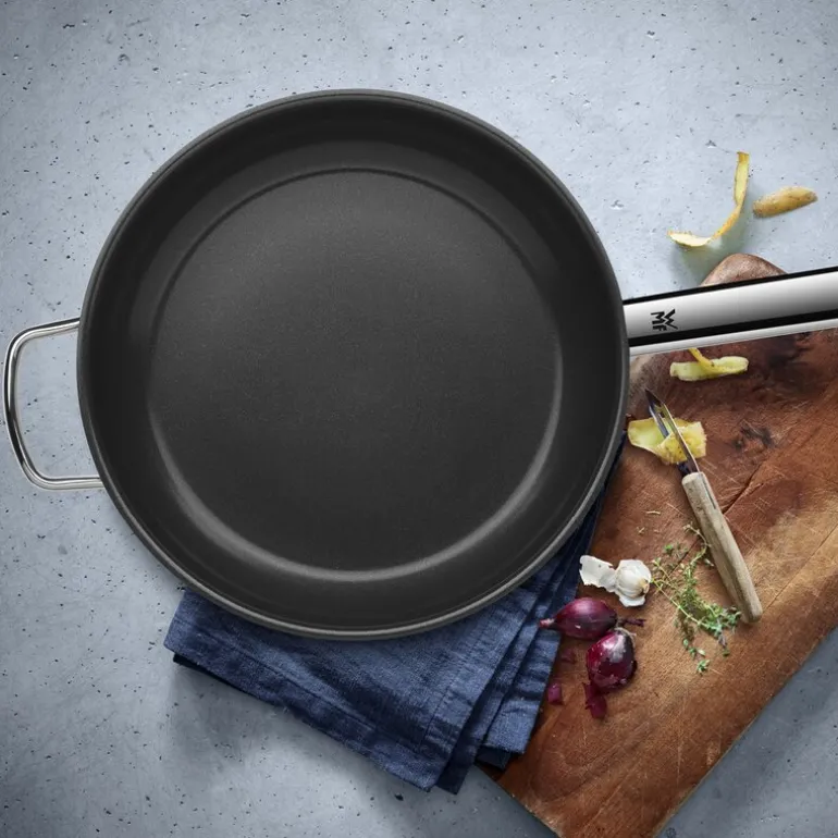 Durado-serien fra WMF tilbyr et bredt utvalg av panner som er perfekte for enhver type rett og tilberedningsmetode. De ergonomiske håndtakene gir et stabilt og behagelig grep, mens det innovative CeraDur non-stick belegget lar deg lage mat med minimalt fettbruk og uten å bekymre deg for at maten setter seg fast. Pannen er ekstremt varmebestandig og tåler temperaturer opp til 400 °C, noe som gjør den til en allsidig hjelper på kjøkkenet, enten du skal steke, brune eller bake.
