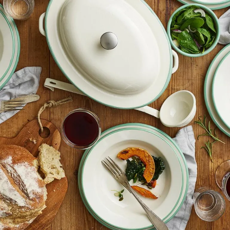 Den dype tallerkenen fra Kockums Jernverk er ideell for servering av gryteretter, supper eller frokostgrøt. Tallerkenen er tilgjengelig i tre vakre fargekombinasjoner: krem med grønn kant, hvit med blå kant, og den nye kombinasjonen hvit med grå underside. Selges enkeltvis, slik at du kan sette sammen ditt eget sett eller legge til en ny favoritt.