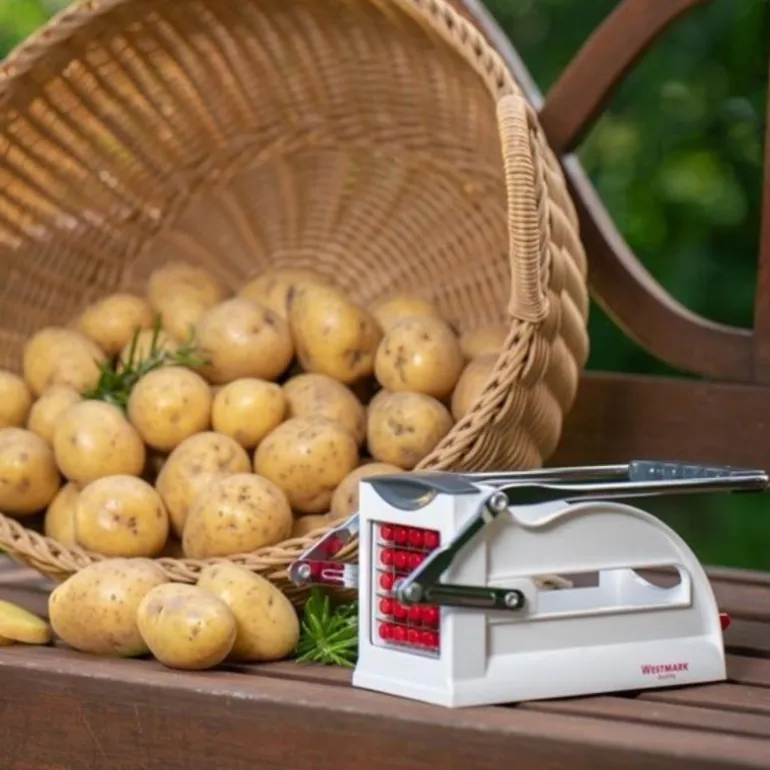 Potetdeler Easy Stix er suveren til hjemmelaget pommes frites eller pent kuttede grønnsaker for dippen.-Kraftfull og enkel-3 innlegg inkludert-Enkel å bytte og rengjøre innsatsene-Sugefot gir trygt feste-Bredt og fast metallhåndtak-Kan ikke vaskes i oppvaskmaskin-5 års garanti Dimensjoner: 24 x 10 x 13 cm-Materiale: ABS, knivblad i rustfritt stål