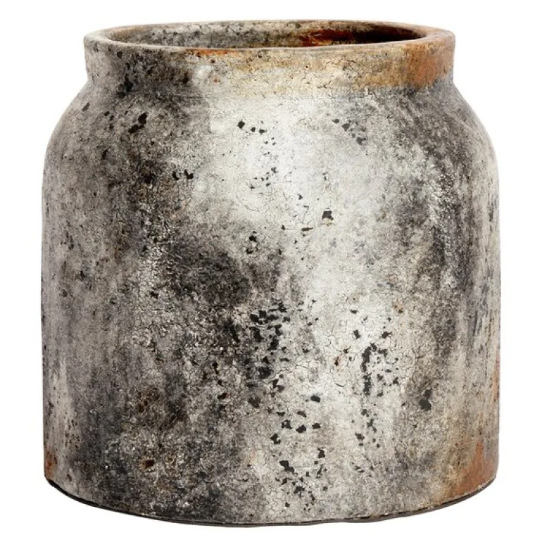 Krukken er ideell for å fremheve tørkede blomster eller dekorasjoner, og tilfører et snev av rustikk eleganse til ethvert rom. Det er viktig å merke seg at krukken ikke er fullstendig vanntett, så det anbefales å plassere en vanntett beholder eller plastbeskyttelse inni for å unngå lekkasjer.