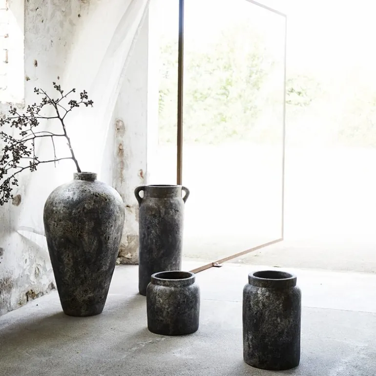 Echo blomsterpotte på 28 cm fra Muubs er en fascinerende kreasjon som elegant forener tradisjonelt håndverk med en moderne, dyp fargepalett. Inspirert av det rå og naturlige i håndverk, gir Echo-serien en rustikk følelse som kommer til uttrykk i krukkens distinkte rustgrå overflate.