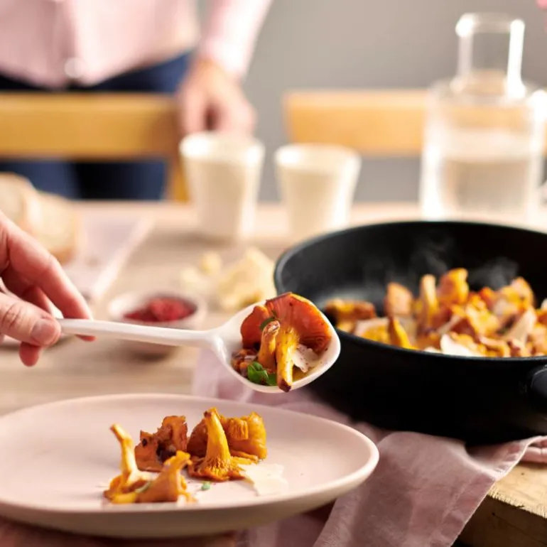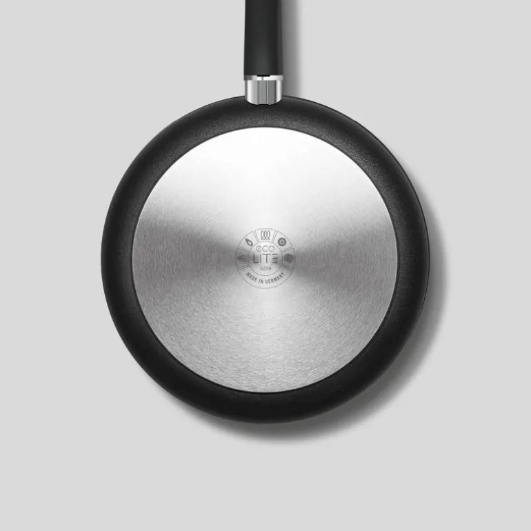 Woll EcoLite stekepanne er fremstilt av sertifisert 100 % resirkulert aluminium og håndtaket av resirkulert treflis. Produsert i Tyskland, og for øvrig er alle råvarer fremskaffet så lokalt som mulig.