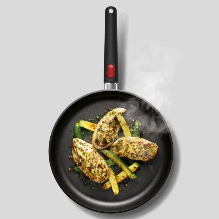 Pannen har et avtagbart håndtak. Pannen tåler ovn, men håndtaket må tas av før den settes i ovnen. Kan brukes på alle varmekilder, også induksjon.