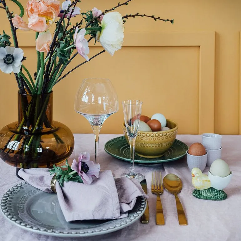Bordallo Pinheiro har produsert kunstnerisk keramikk i Portugal siden 1884. Grunnleggeren Raphael Bordallo Pinheiro hentet inspirasjon fra hverdagslivet og skapte gjenstander preget av naturtro former og livlige glasurer. Dette eggeglasset er intet unntak – det bærer arven videre med sitt unike, humoristiske design og flotte håndverk.