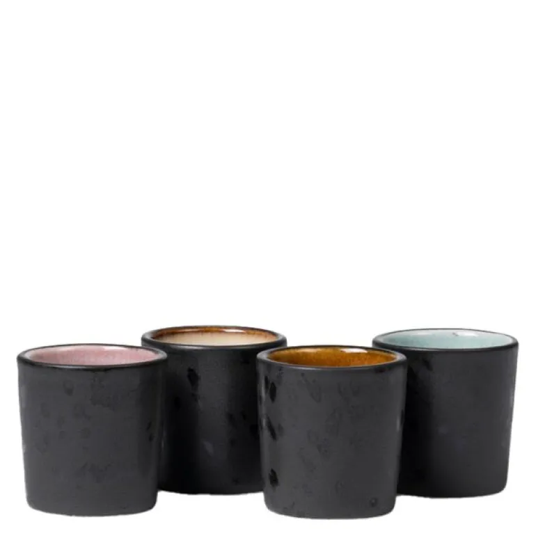 Et perfekt egg fortjener det beste, og med BITZ eggeglass får du en elegant servering til dine bløtkokte egg. Disse vakre eggeglassene er laget av steintøy i en stilig matt svart utførelse, med en skinnende glasur på innsiden som gir en raffinert kontrast. Settet inkluderer fire delikate farger: rav, rosa, krem og lyseblå, som alle harmonerer vakkert når de kombineres på bordet. Med en høyde på 5 cm er disse eggeglassene både funksjonelle og estetisk tiltalende, og vil garantert imponere gjestene dine ved enhver frokost- eller brunsjservering.