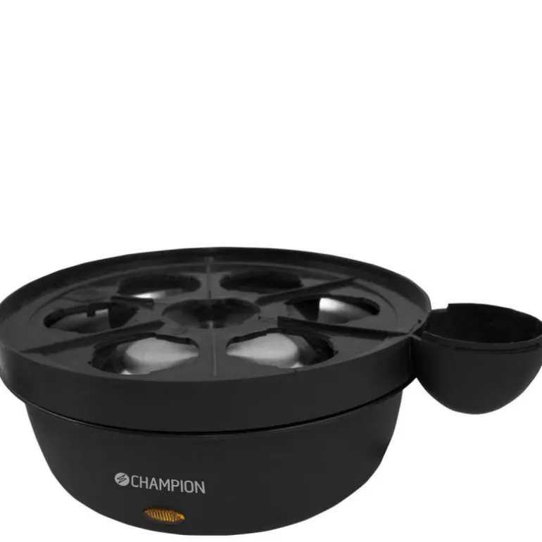 Med Champions eggkoker kan du enkelt tilberede perfekte egg til frokosten uten å bekymre deg for koketiden. Uansett om du foretrekker eggene dine bløtkokte eller hardkokte, justeres resultatet enkelt ved å tilsette riktig mengde vann. Eggkokeren vil gi fra seg et signal når eggene er ferdigkokte og klare til å nytes.
