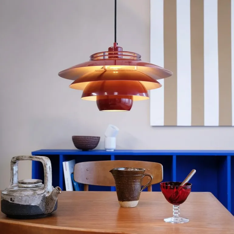 EJKA pendel 20 cm fra Dyberg Larsen er en vakker og funksjonell lampe som passer perfekt i det moderne hjem. Pendelen gir et rent og minimalistisk uttrykk som komplementerer enhver innredningsstil. De fire lagdelte skjermene sørger for en balansert lysfordeling, mens den åpne toppen sprer lyset oppover og ut i rommet, noe som skaper en lys og luftig atmosfære.