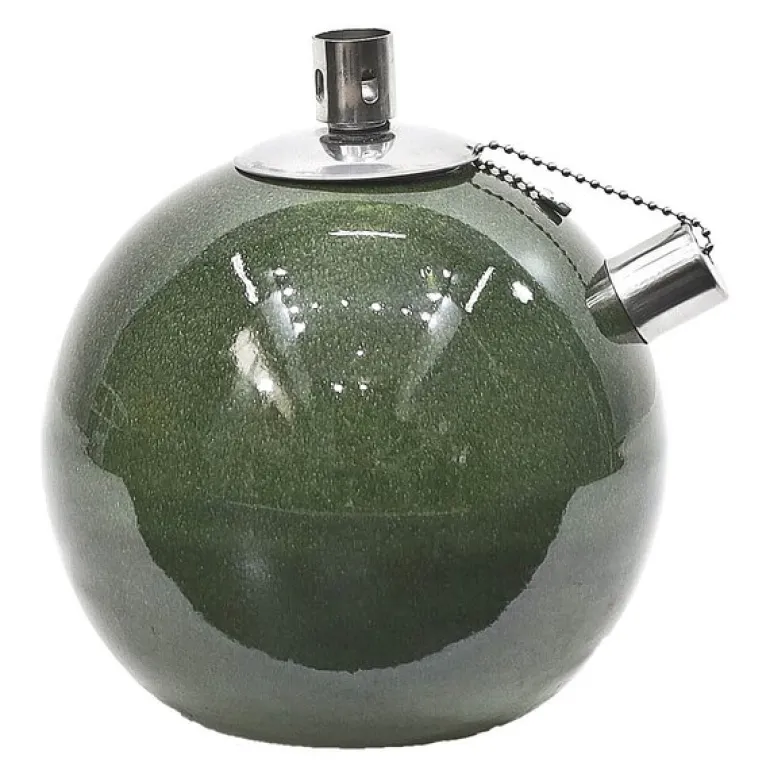 Elda irish green oljelampe fra GUS Design er en stilig og funksjonell løsning for å skape stemningsfull belysning utendørs. Den runde formen og den elegante blanke grønne glasuren gir lampen et rent og sofistikert uttrykk som passer perfekt i ulike uterom, fra terrassen til hagen.