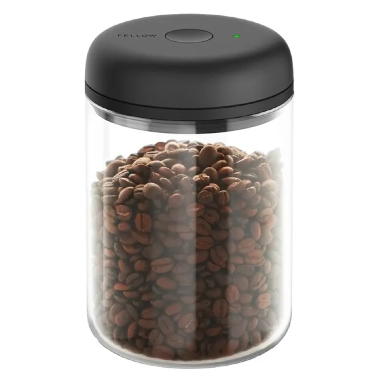 Electric Atmos vakuum oppbevaringsboks på 1,2 liter i borosilikateglass med svart lokk fra Fellow er den ultimate løsningen for å holde kaffe og matvarer ferskere lenger. Denne lufttette beholderen er utstyrt med en innovativ vakuumpumpe i lokket, som enkelt fjerner luft og reduserer oksidasjon. Du kan velge mellom Manuell Atmos, hvor du vrir for å låse, eller Electric Atmos, som låses med et knappetrykk, for en uanstrengt og elegant oppbevaring.