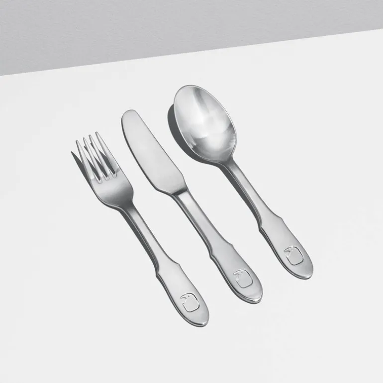 Elephant bestikksett fra Georg Jensen er en sjarmerende klassiker for de minste. Settet består av barneskje, gaffel og kniv – alt i blankt rustfritt stål med det ikoniske elefantmotivet.