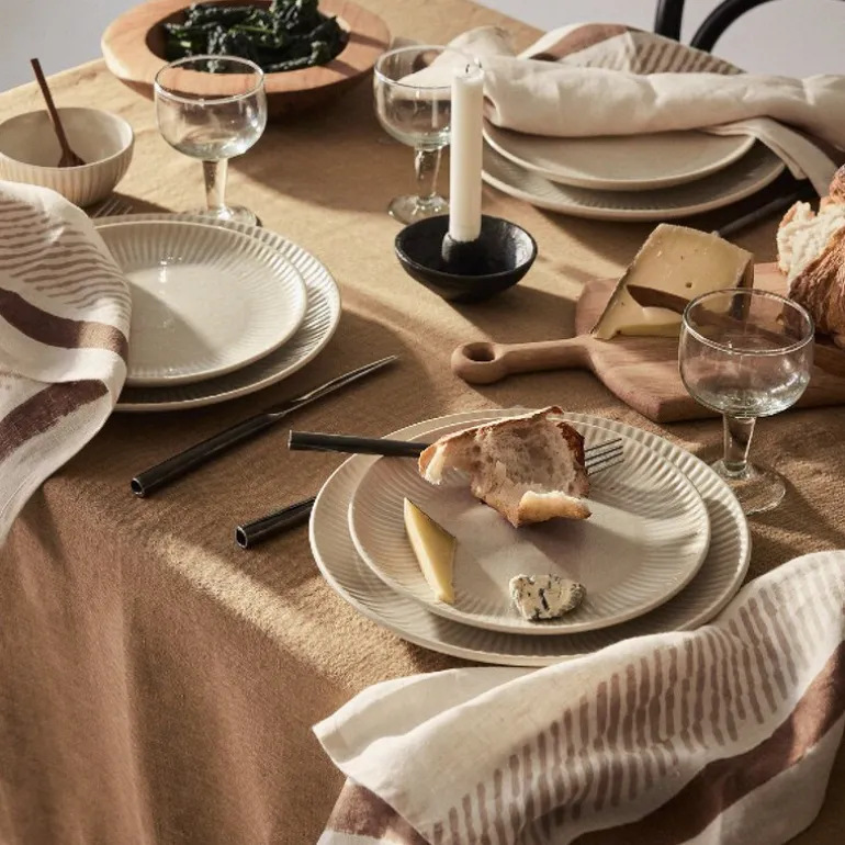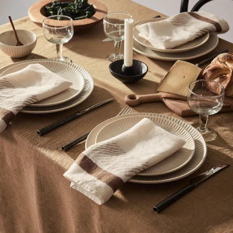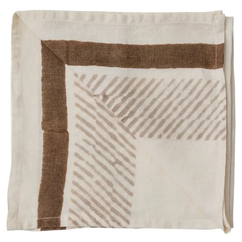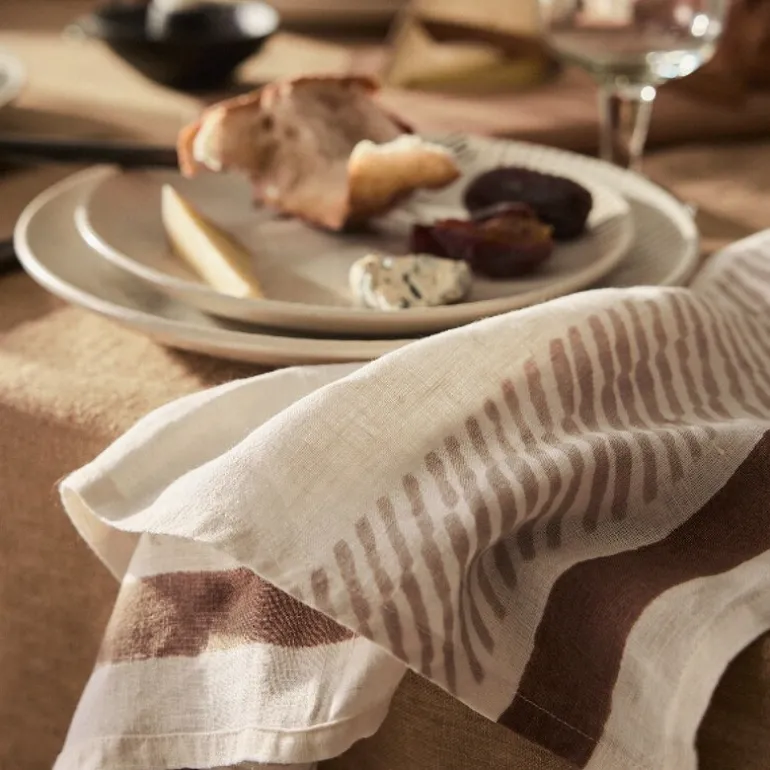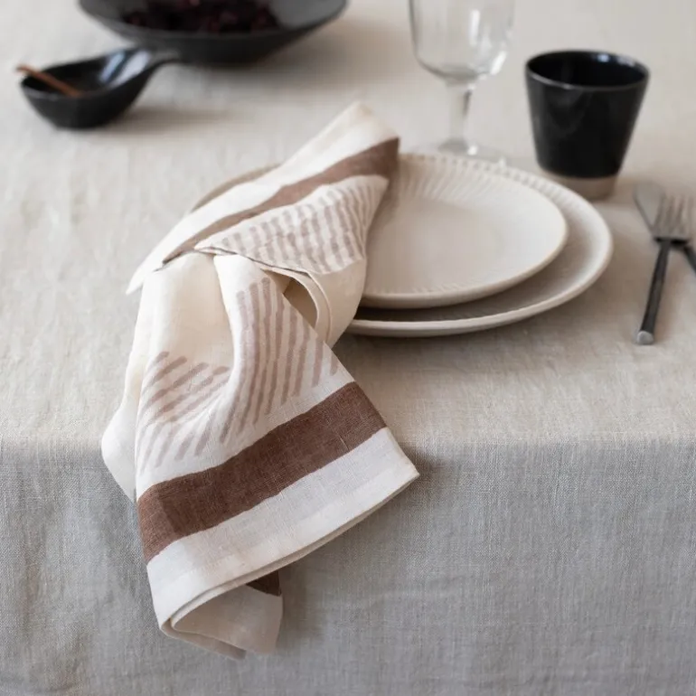 Hver serviett får sitt eget uttrykk gjennom denne manuelle prosessen, noe som gir et levende og autentisk resultat. Linens naturlige tekstur og det håndtrykte mønsteret skaper en balanse mellom det rustikke og det detaljerte.
