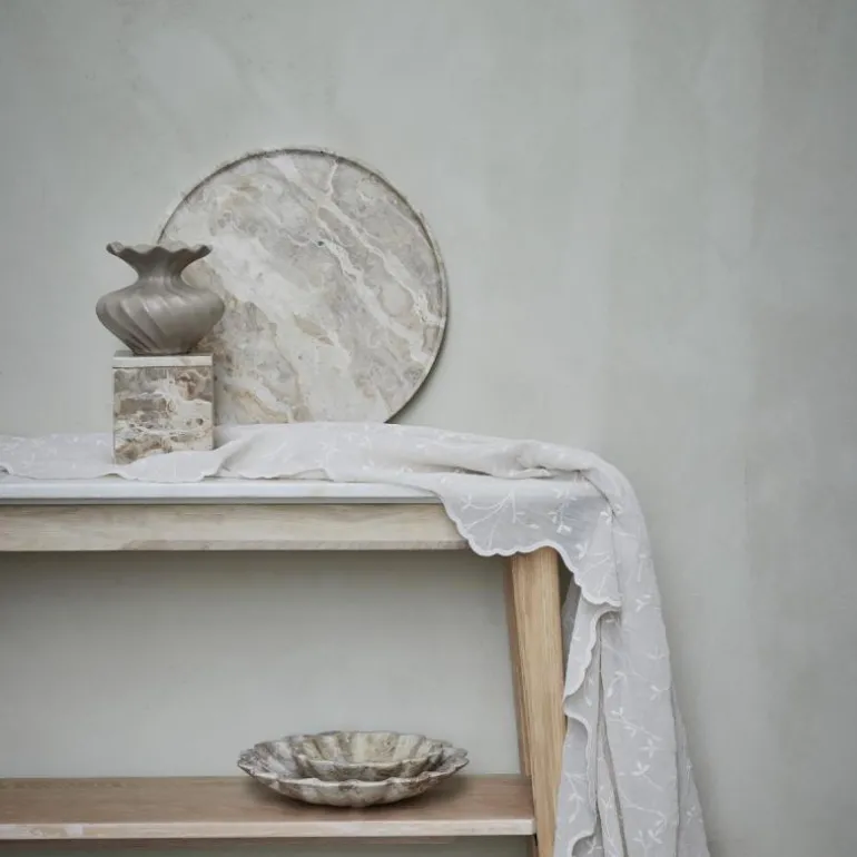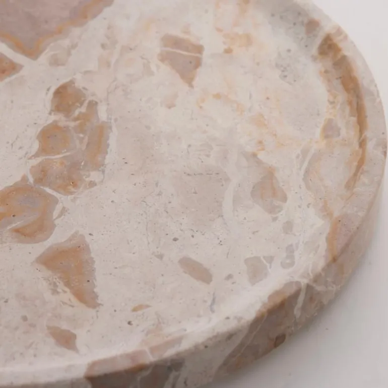 Hvert Ellia-fat er laget av solid marmor, skåret ut fra en stor blokk, formet til perfeksjon og polert på alle overflater. Denne håndverksprosessen krever både erfaring og nøyaktighet, noe som sikrer den perfekte formen. Fordi marmor er et naturlig materiale, vil hver skål ha unike variasjoner i farge, fra lysebrun til mørk brun, som gjør hvert fat unikt.