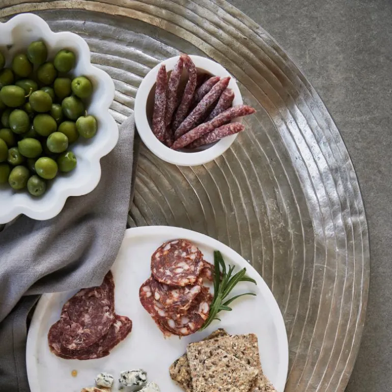 Hver Ellia-skål er laget av solid marmor, skåret ut fra en stor blokk, formet til perfeksjon og deretter polert på alle overflater. Denne prosessen krever både erfaring og nøyaktighet, noe som sikrer den ideelle formen. Siden marmor er et naturlig materiale, vil hver skål ha unike variasjoner i farge, fra lysebrun til mørk brun, noe som gjør hver skål unik.
