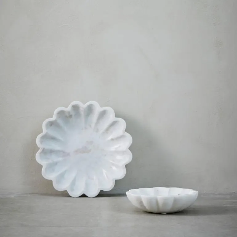 Hver Ellia-skål er laget av solid marmor, skåret ut fra en stor blokk, formet til perfeksjon og deretter polert på alle overflater. Denne prosessen krever både erfaring og nøyaktighet, noe som sikrer den ideelle formen. Siden marmor er et naturlig materiale, vil hver skål ha unike variasjoner i farge, fra lysebrun til mørk brun, noe som gjør hver skål unik.