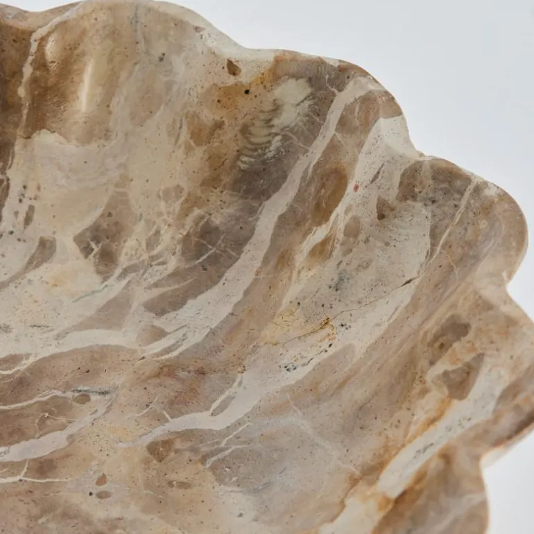 Hver Ellia-skål er skåret ut fra en massiv marmorblokk, formet med presisjon og polert til perfeksjon, noe som krever både erfaring og nøyaktighet. Ettersom marmor er et naturlig materiale, vil hver skål ha unike variasjoner i farge og mønster, fra lysebrunt til mørkebrunt, noe som gjør hver enkelt skål til et enestående kunstverk.