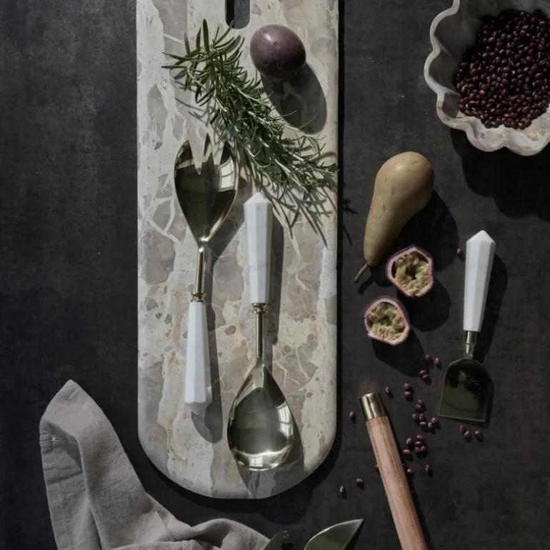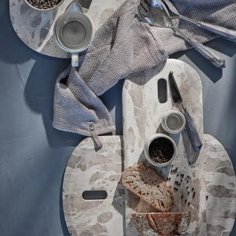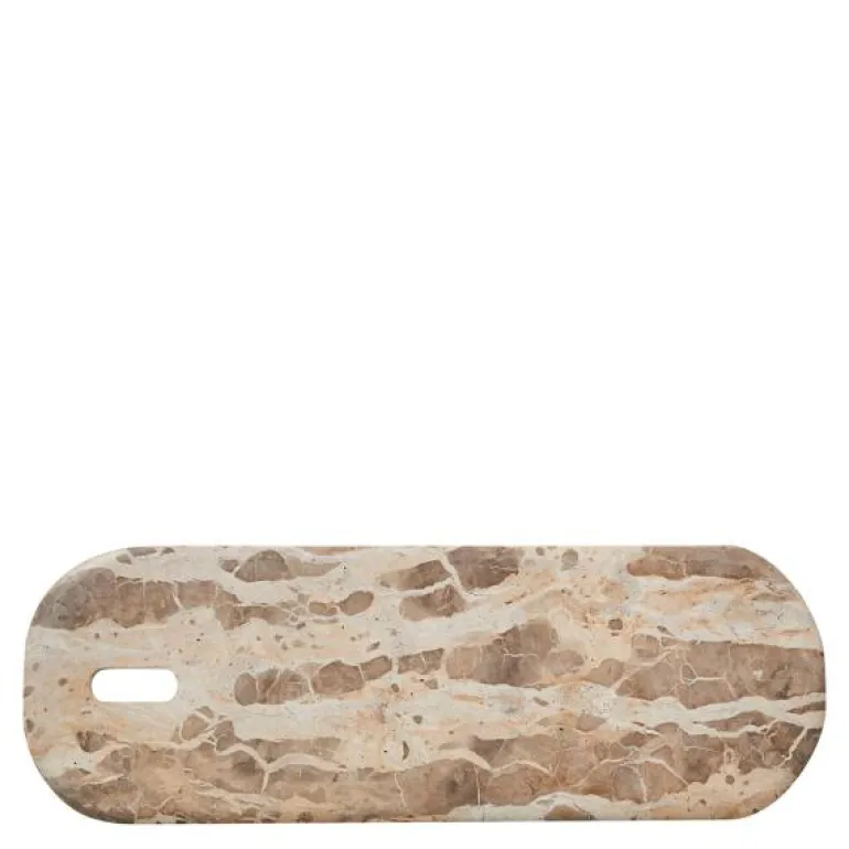 Bruk Ellia skjærebrett 60×20 cm sand i marmor til tilbehøret. Ellia-serien er kjent for sin vakre marmor, hvor hvert brett og midtstykke er nøye skåret ut fra en stor marmordel. Dyktige håndverkere former marmoren til imponerende brett eller praktiske midtstykker, noe som gir hvert produkt et unikt utseende og varierende størrelse. Dette gjør at ditt brett fra Lene Bjerre vil ha sitt eget særpreg. Når Ellia-serien ikke brukes til servering, fungerer marmoren som en stilfull dekorasjon i hjemmet ditt.