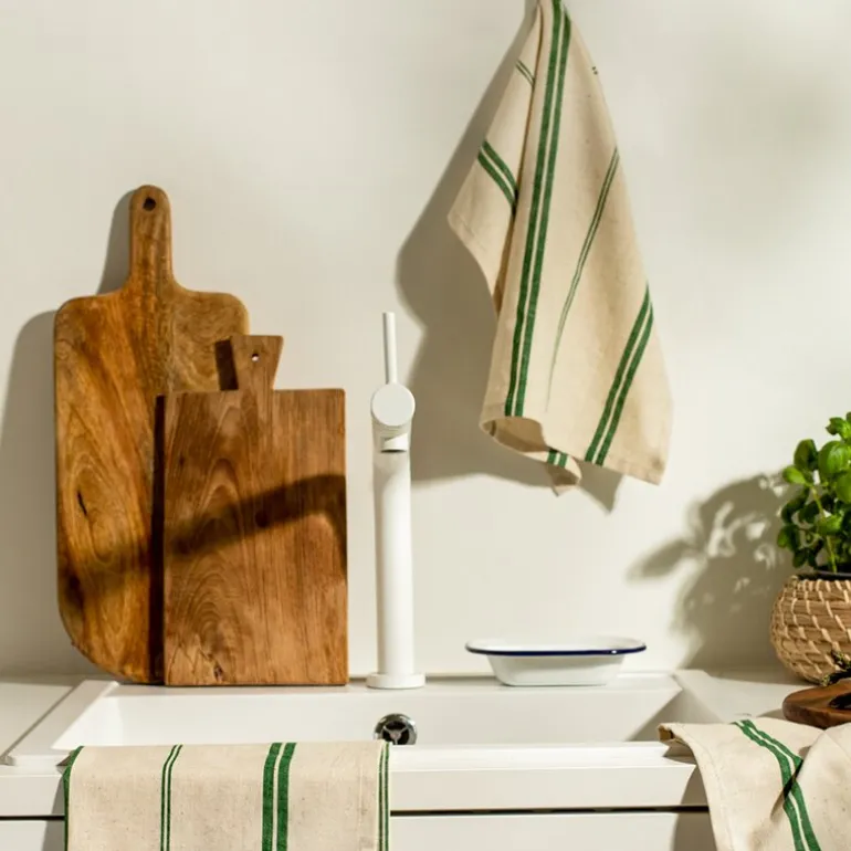 Den naturhvite bakgrunnen med grønne striper gir et klassisk og sofistikert uttrykk som passer inn i ethvert kjøkken. Elsa-serien er kjent for sitt tidløse design, og dette håndkleet kan enkelt matches med andre produkter i serien for en helhetlig stil.
