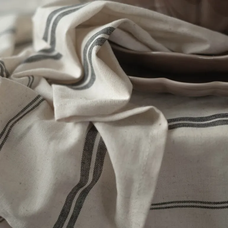 Elsa kjøkkenhåndkle fra Stiernholm, med målene 70×50 cm, er laget av en deilig blanding av 70 % myk bomull og 30 % slitesterk lin, noe som gir det en luksuriøs og behagelig følelse. De klassiske svarte stripene mot den naturhvite bakgrunnen skaper et stilrent og tidløst uttrykk som passer perfekt inn i ethvert kjøkken, uansett anledning. Dette kjøkkenhåndkleet kombinerer funksjonalitet med et elegant design, og vil være et vakkert tillegg til hverdagsbruk eller ved spesielle anledninger.
