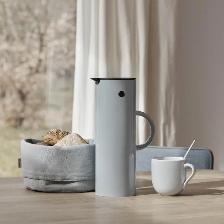 EM77 termokannen, designet av Erik Magnussen i 1977, er et ikon innen moderne design med sin tidløse estetikk og praktiske funksjonalitet. Den unike vippeproppen, som er både patentert og praktisk, gjør servering enkelt uten behov for å skru av lokket. Kannen er fri for BPA og phthalater, noe som gjør den til et trygt valg for daglig bruk.
