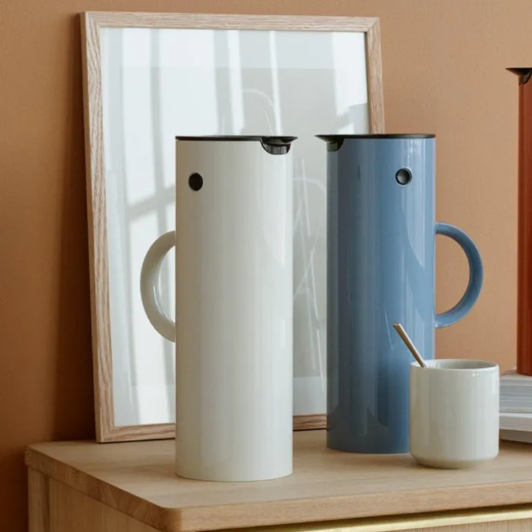 EM77 Termokanne på 1 liter fra Stelton er et ikonisk design laget av Erik Magnussen i 1977, og den har siden blitt en av Danmarks mest kjente og solgte produkter. Denne termokannen er anerkjent internasjonalt for sitt unike vippe-lokk, som gjør servering både enkelt og stilfullt. Den er også et moteikon, med nye farger som lanseres hver vår og høst, noe som gjør den til en trendy tillegg til ethvert kjøkken eller pikniksett.