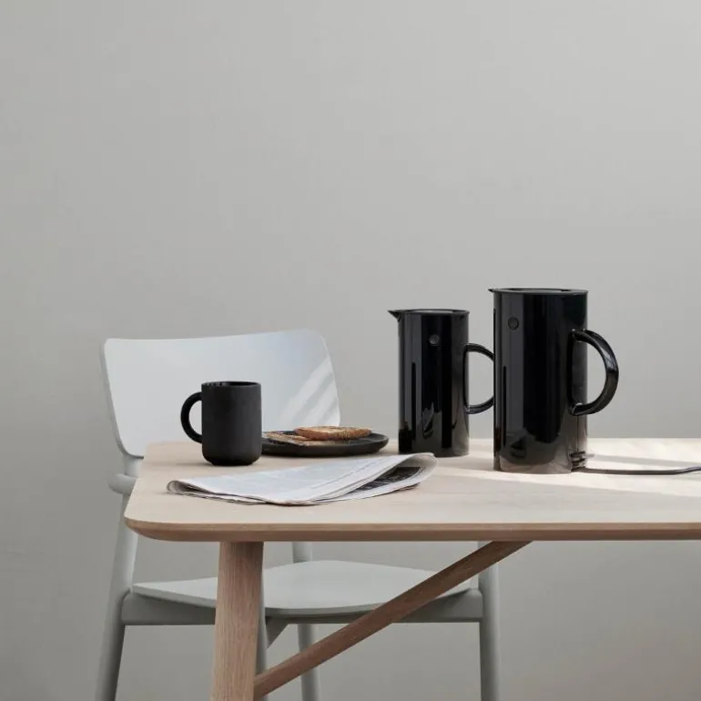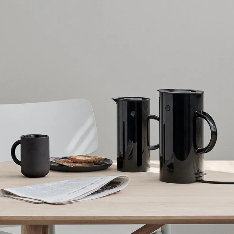 EM77 vannkoker i svart fra Stelton, designet av Erik Magnussen, er en stilfull og funksjonell vannkoker som kombinerer tidløs estetikk med praktiske egenskaper. Med sin sylindriske form og en kapasitet på 1,5 liter er den ideell til å koke opp vann til te, kaffe eller til matlaging når du trenger varmt vann raskt, som til pasta eller poteter.