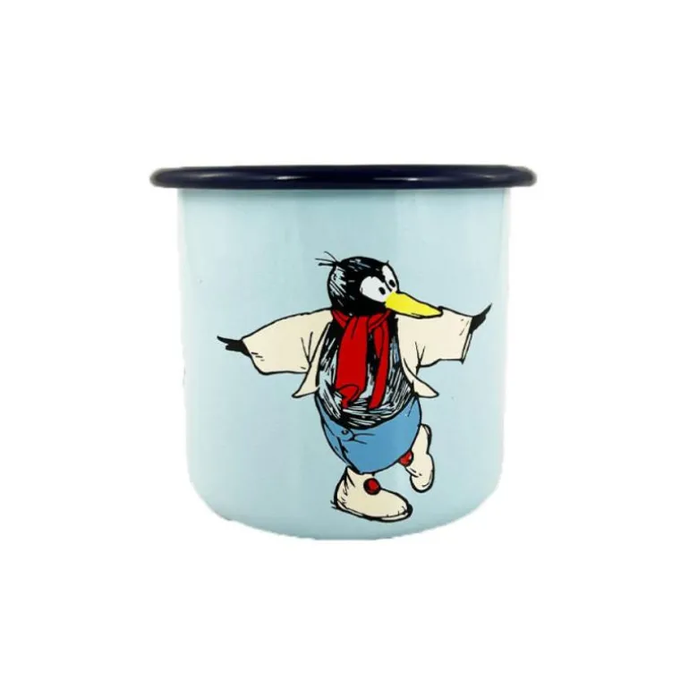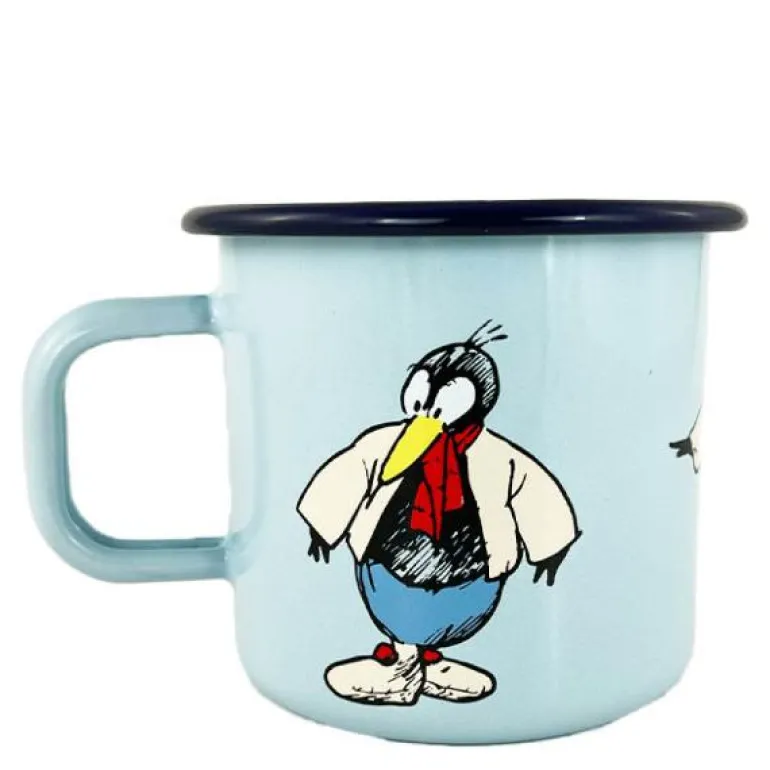 Flåklypa emaljekopp på 37 cl i en livlig blå nyanse med Solan-motiv er en energisk og funksjonell kopp som gir et snev av Flåklypa til kaffestunden. Med en myk kantovergang er koppen komfortabel å drikke fra, samtidig som den er allsidig i bruk. Den tåler både komfyr, induksjonsplate, ovn og oppvaskmaskin, men er ikke egnet for bruk i mikrobølgeovn. Hver kopp er håndlaget, noe som gir den en unik karakter og særpreg.