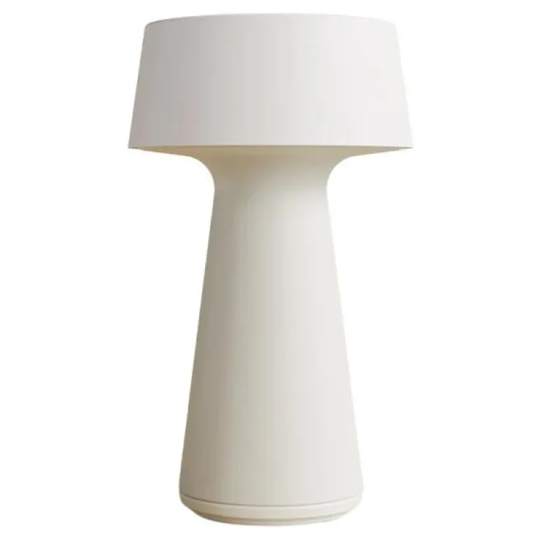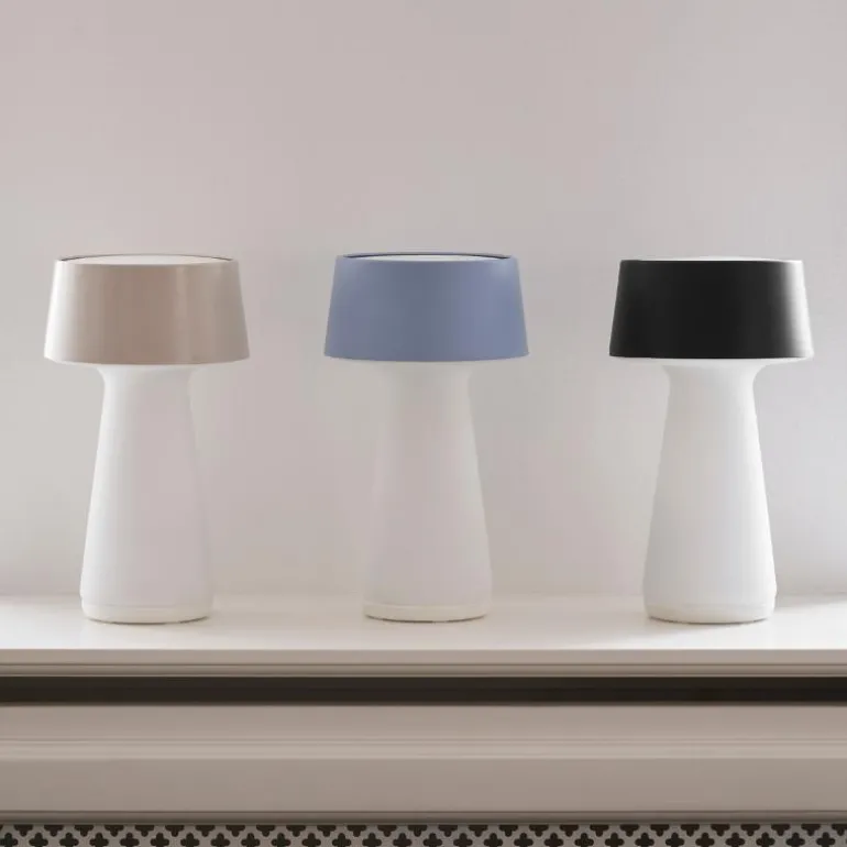 Oppladbar og bærbar bordlampe, Ember, fra Spring Copenhagen. Bordlampen gir et stemningsfullt lys, og har et vakkert og enkelt design. Ta Ember med deg ut i hagen eller på terrassen for å forlenge sommerkveldene, sett den på hjemmekontoret, på sidebordet i stua eller på nattbordet. Selve lampen er laget i munnblåst opalglass, og øverst blir den omkranset av en aluminiums ring.