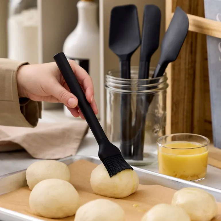 Emma slikkepott smal, svart fra Rosti måler 25,2 x 3,3 cm og er ideell for bruk i glass, bokser og beholdere med trange åpninger. Den slanke formen gjør det enkelt å skrape ut innhold uten søl, og den egner seg godt til syltetøy, sauser og lignende.