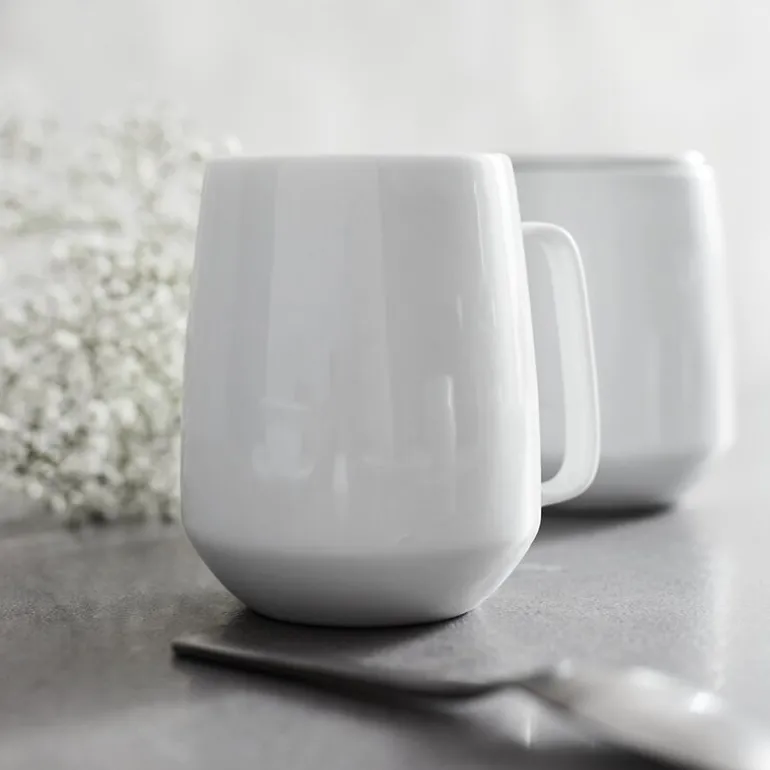 Kruset er utformet med en unik innadvendt form som bidrar til å bevare varme og aroma i dine drikker, noe som gjør den ideell for både varme og kalde drikker. Den er laget av høytrykksstøpt porselen som har gjennomgått en dobbel brenningsprosess ved svært høye temperaturer, noe som gir eksepsjonell holdbarhet. Muggen er ikke bare vakker, men også praktisk, da den tåler både ovn, oppvaskmaskin og mikrobølgeovn, noe som gjør den lett å bruke og vedlikeholde i hverdagen.