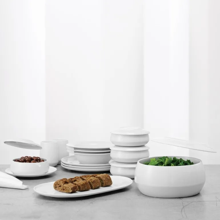 Fatets unike innadvendte form er både estetisk tiltalende og praktisk, da den bidrar til å bevare varme og aromaer, noe som gjør det ideelt for servering av varme retter. Den generøse spiseoverflaten gjør fatet perfekt for større serveringer, enten det er hovedretter, salater eller anretninger ved festlige anledninger. Laget av sterkt høytrykksstøpt porselen som har gjennomgått en dobbel brenningsprosess ved svært høye temperaturer, tilbyr dette fatet imponerende holdbarhet og lang levetid.