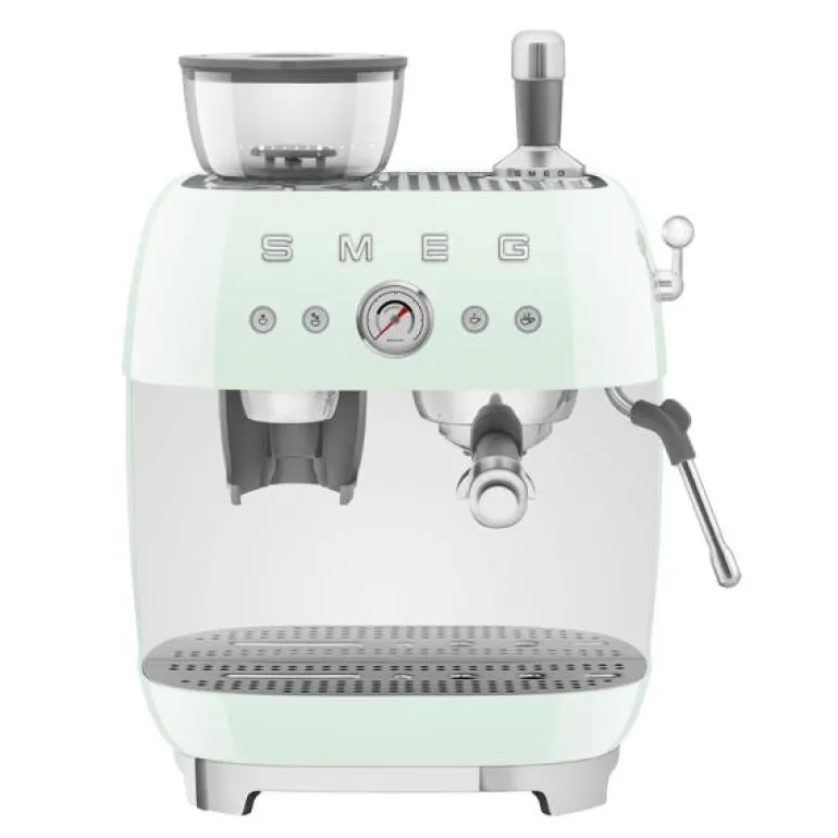 Espressomaskin EGF03 2,4L pastellgrønn med kaffekvern er et elegant tilskudd til enhver kaffeelskers kjøkken. Denne espressomaskinen er designet med Smegs ikoniske retrostil og innovative teknologi, noe som gjør den til et perfekt valg for de som verdsetter både form og funksjon.