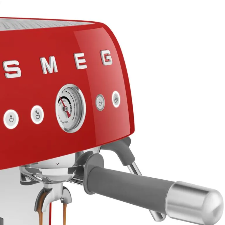 Espressomaskin EGF03 2,4L rød med kaffekvern er et elegant tilskudd til enhver kaffeelskers kjøkken. Denne espressomaskinen er designet med Smegs ikoniske retrostil og innovative teknologi, noe som gjør den til et perfekt valg for de som verdsetter både form og funksjon.