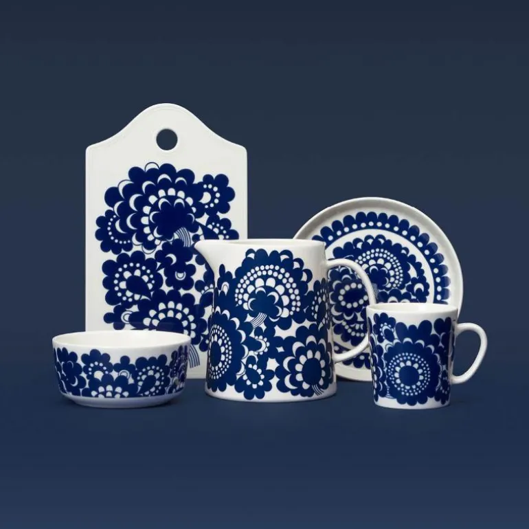 Esteri bowl 13cm. Stilige Esteri er et pust fra 1970-tallet i et moderne designspråk. Blomstermønsteret, som er typisk for Esteri Tomula, er gjenkjennelig og tydelig. De moderne formene sammen med et sterkt mønster gjør at den skiller seg ut i borddekkingen. Designer Esteri Tomula. Kan vaskes i oppvaskmaskin.